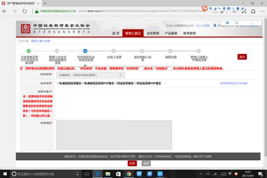 私募基金重磅新规详细解读 2017年3月31日,中国证券投资基金业协会(以下简称“基金业协会”或“协会”)颁布了《私募基金登记备案相关问题解答(十三)》(以下简称“问题解答十三”或“问题解答”),标志着基金专业化管理迈上新台阶。 2017年2月14日,基金业协会颁布了《证券期货经营机构私募资产管理计划备案管理规范第4号——私募资产管理计划投资房地产开发企业、项目》(以下简称“备案4号文”),问题解答和备案4号文均包含重要信息,以下我们将逐一解读。 (1)“问题解答十三”提出了了专业化管理原则 问题解答原文:为进一步落实私募基金管理人专业化管理原则,切实建立有效机制以防范可能出现的利益输送和利益冲突,提升行业机构内部控制水平,私募基金管理人在申请登记时,应当在“私募证券投资基金管理人”、“私募股权、创业投资基金管理人”等机构类型,以及与机构类型关联对应的业务类型中,仅选择一类机构类型及业务类型进行登记...... 解析: 1. 基金管理人在申请登记选择机构类型时,仅可以在私募证券投资基金管理人、私募股权、创业投资基金管理人和其他类别中选择一类(如下图)。在选择业务类型时,只可选择与机构类型对应的业务类型(如下图)。 2. 有关私募投资基金“业务类型、基金类型”的说明见下图 业务类型/基金类型 定义 私募证券投资基金 私募证券基金,主要投资于公开交易的股份有限公司股票、债券、期货、期权、基金份额以及中国证监会规定的其他证券及其衍生品种; 私募证券类 FOF 基金 私募证券类 FOF 基金,主要投向证券类私募基金、信托计划、券商资管、基金专户等资产管理计划的私募基金; 私募股权投资基金 私募股权基金,除创业投资基金以外主要投资于非公开交易的企 业股权; 私募股权投资类 FOF 基金 私募股权投资类 FOF 基金,主要投向股权类私募基金、信托计划、券商资管、基金专户等资产管理计划的私募基金; 创业投资基金 创业投资基金,主要向处于创业各阶段的未上市成长性企业进行 股权投资的基金(新三板挂牌企业视为未上市企业);(对于市场 所称“成长基金”,如果不涉及沪深交易所上市公司定向增发股 票投资的,按照创业投资基金备案;)如果涉及上市公司定向增发的,按照私募股权投资基金中的“上市公司定增基金”备案。 创业投资类 FOF 基金 创业投资类 FOF 基金,主要投向创投类私募基金、信托计划、券商资管、基金专户等资产管理计划的私募基金; 其他私募投资基金 其他类别私募基金,投资除证券及其衍生品和股权以外的其他领域的基金 其他私募投资类 FOF 基金 其他私募投资类 FOF 基金,主要投向其他类私募基金、信托计划、券商资管、基金专户等资产管理计划的私募基金; (注:对于主要投资新三板拟挂牌和已挂牌企业的“新三板基金”,建议按照创业投资基金备案;主要投资上市公司定向增发的“上市公司定增基金”,基金类型建议选择“股权投资基金”。) 3. 根据新系统(如下图),基金管理人在机构类型选定并办理通过后,均不能再修改,如需要修改“机构类型”,则需要注销登记并重新申请私募基金管理人登记。这意味着基金管理人需要重新聘请律师事务所出具法律意见书。 4. 备案时私募基金管理人也只可备案与本机构已登记业务类型相符的私募基金,不可管理与本机构已登记业务类型不符的私募基金,同一私募基金管理人不可兼营多种类型的私募基金管理业务。 (2)“问题解答十三”指出了机构从事多种类型业务的解决办法 问题解答原文:若私募基金管理机构确有经营多类私募基金管理业务的实际、长期展业需要,可设立在人员团队、业务系统、内控制度等方面满足专业化管理要求的独立经营主体,分别申请登记成为不同类型的私募基金管理人。 解析:若公司想从事多种私募基金业务,则需要提前设立多个基金管理公司,各个基金管理公司都要登记成为私募基金管理人。 (3)“问题解答十三”提出已登记多类业务类型的私募基金管理人的整改办法 问题解答原文:私募基金管理人应通过“资产管理业务综合管理平台”提交机构类型与业务类型变更申请,以落实专业化管理原则。私募基金管理人须在完成机构类型与业务类型的变更确认之后,方可提交新增私募基金备案申请。 解析:根据新系统“资产管理业务综合管理平台”(如下图),基金管理人需要在系统中填写变更原因,并提交变更申请书。变更申请书中应明确说明变更后符合专业化管理要求的机构类型和业务类型(与系统中填报一致),并加盖公章。 (4)“问题解答十三”已备案且正在运作的存量私募基金的处理方案 问题解答原文:针对此类私募基金管理人所管理的已备案且正在运作的存量私募基金,若存在基金类型与管理人在“资产管理业务综合管理平台”所选择业务类型不符情形的,在基金合同、公司章程或者合伙协议(以下统称基金合同)到期前仍可以继续投资运作,但不得在基金合同到期前开放申购或增加募集规模,基金合同到期后应予以清盘或清算,不得续期;同时协会将在相关私募基金公示信息中,对此情形予以特别提示。此类私募基金管理人应就此事项向相关私募基金投资者及时做好信息披露,维护投资者的合法权益。 解析:基金业协会遵循“不溯及既往”原则,针对已备案且正在运作的存量私募基金,