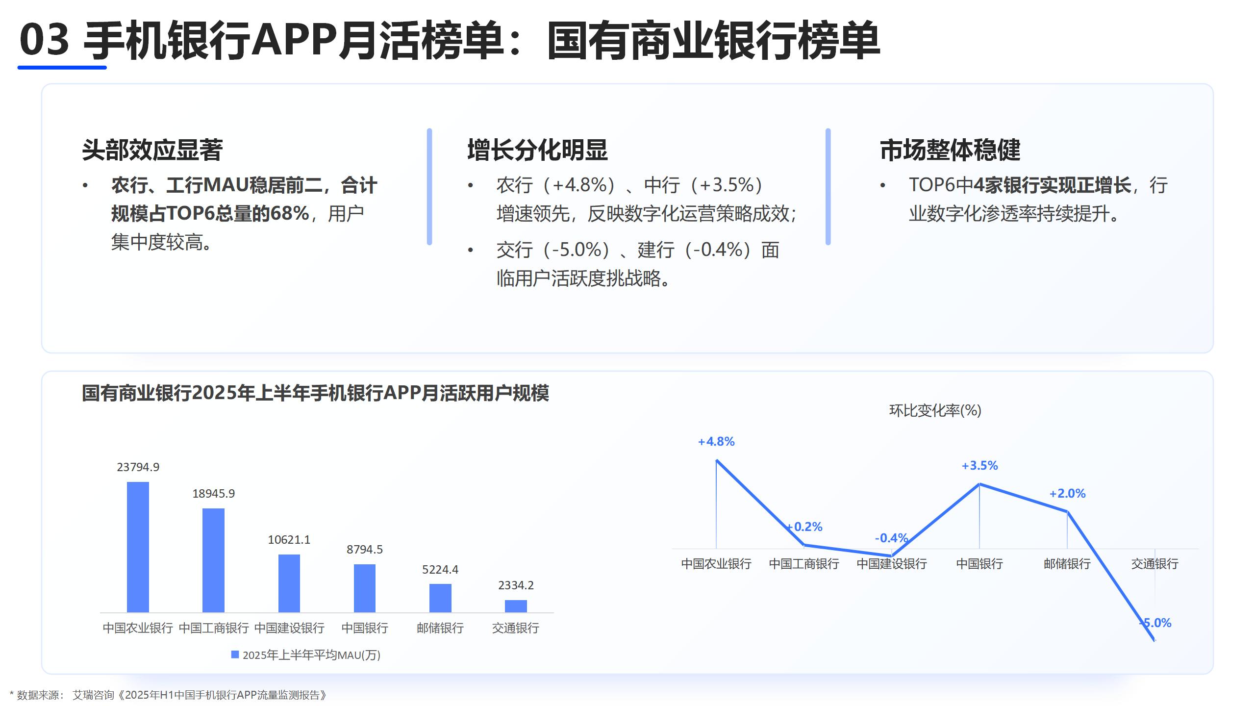 国有大行:凭借庞大客群与生态优势巩固份额,但增长乏力(仅农行、中行增速超3%),面临“大而不活”的考验。