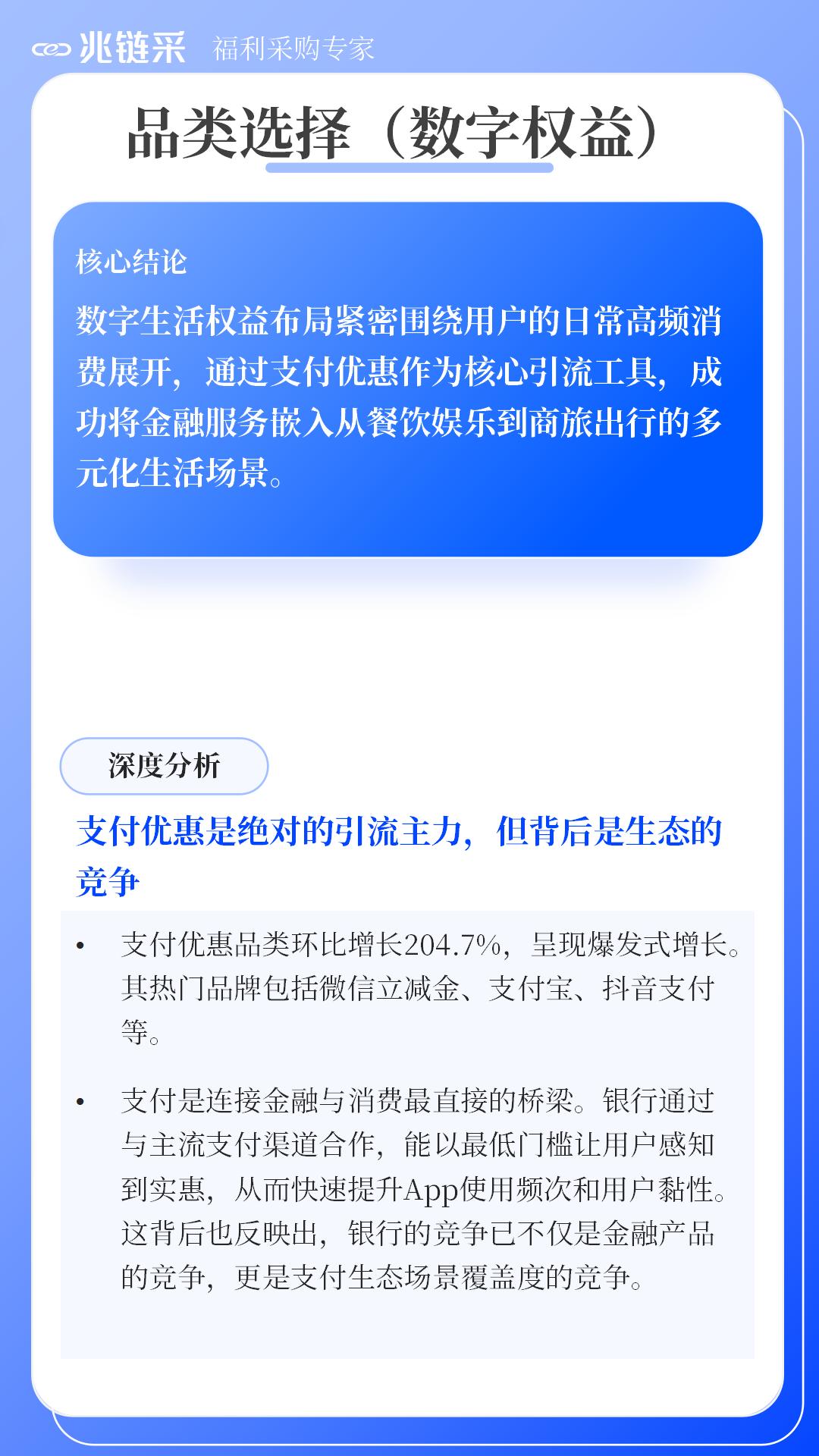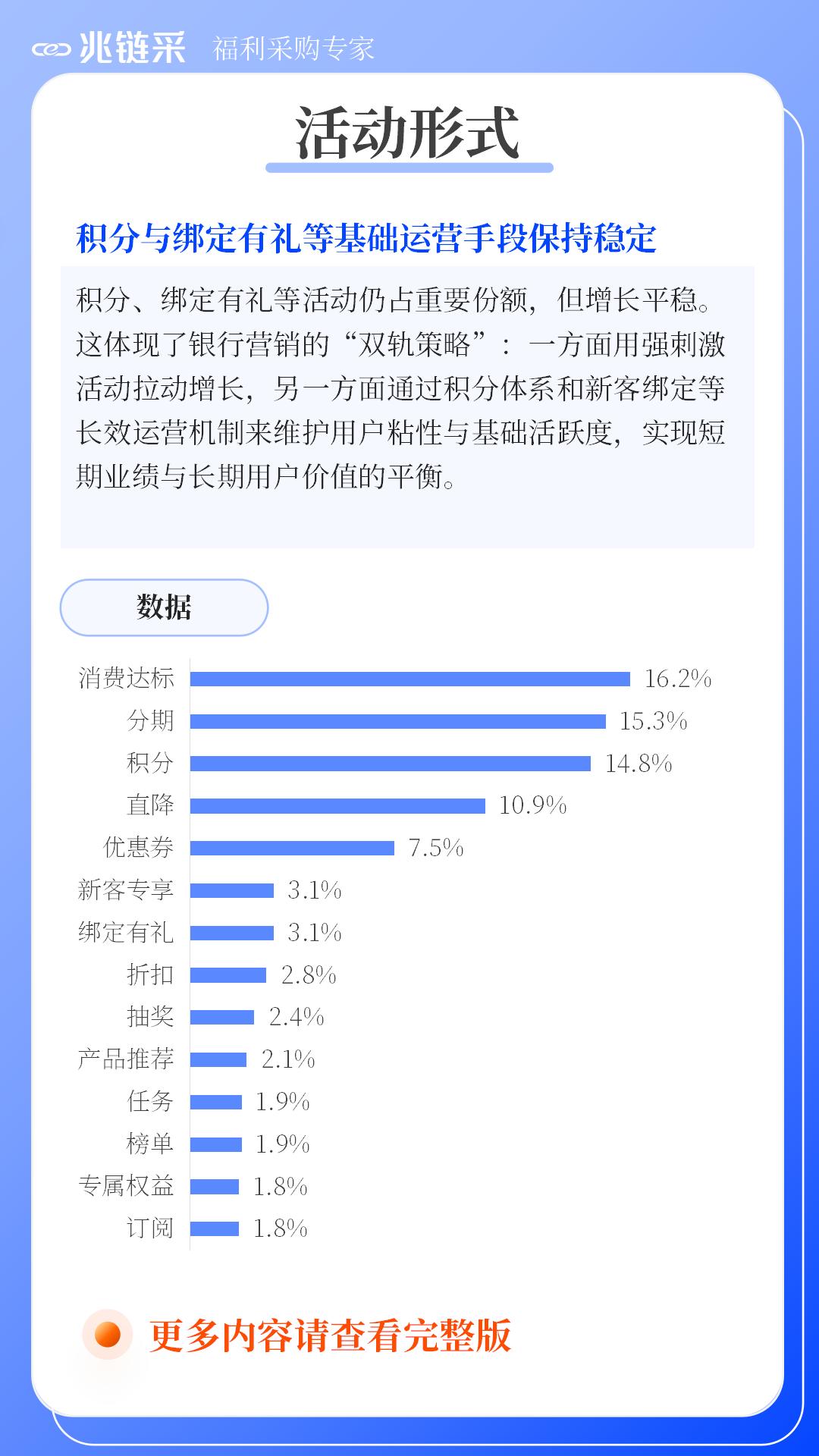 支付场景竞争白热化:支付优惠类活动环比暴增204.7%,成为银行嵌入高频消费的核心抓手。