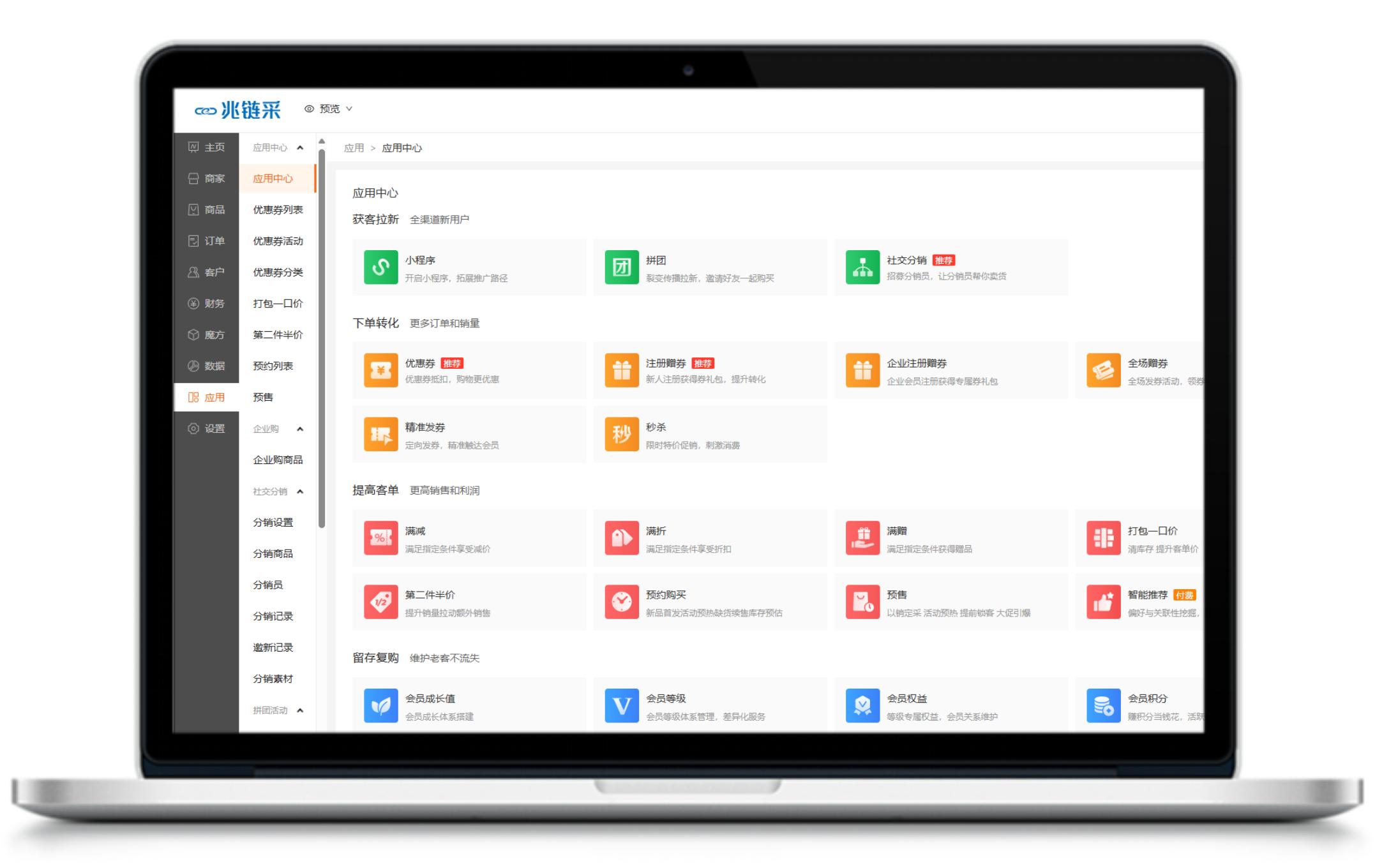 营销工具定制开发:根据企业需求定制开发优惠券、社交分销、满减等营销工具,结合数据分析优化活动效果,提升客户转化率与品牌影响力。
