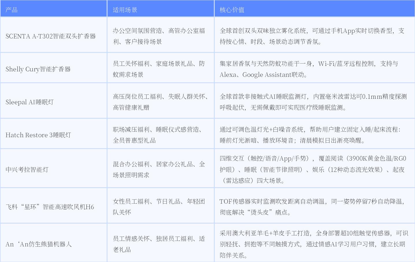 企业采购正在用这类产品传递“关注员工精神健康”的信号。相比于千篇一律的U盘或笔记本,一台能改善睡眠质量的助眠灯,或一台能快速打理发型的高速吹风机,更能获得年轻员工的认可。